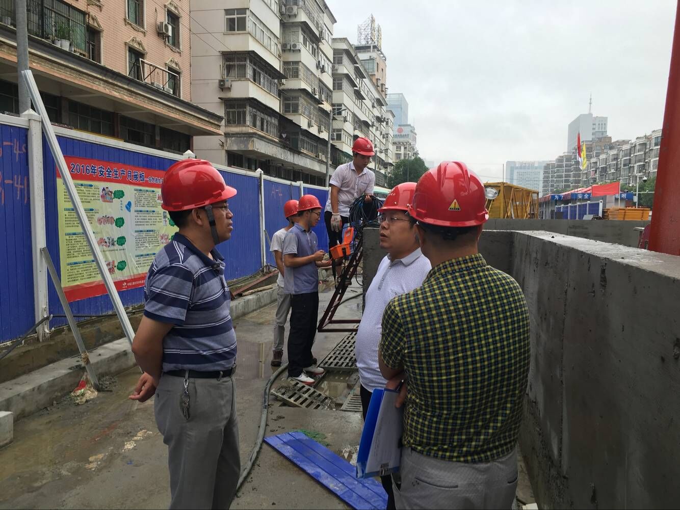 近期武漢地區(qū)連降暴雨,城區(qū)多處漬水嚴重,給我公司外業(yè)工地安全生產(chǎn)文明施工帶來極大不利影響,安全隱患陡增。公司領導高度重視,董事長廖建生親自部署,要求各生產(chǎn)部門對在建工地進行仔細排查,消除安全隱患,并要求綜合部、安全生產(chǎn)部隨時待命作好后勤保障工作。7月5日上午,公司副總經(jīng)理、總工官善友親自帶隊,率領安全生產(chǎn)部、技術質(zhì)量部前往江夏地鐵27號線北華街站基坑監(jiān)測工地、漢口火車站優(yōu)撫醫(yī)院基坑工地、長豐大道勘察工地檢查工作。每到一處,官總都要詳細詢問工程進展情況、項目存在的問題,安全生產(chǎn)文明施工措施落實情況,為現(xiàn)場項目組出謀現(xiàn)策。官總對各在建工地安全文明施工及規(guī)范管理予以了肯定,同時督促在建項目負責人要時刻不放松地抓好工程質(zhì)量與安全管理,認真落實安全生產(chǎn)責任制,面對惡劣天氣要認真貫徹值班制度,加強安全巡查,及時發(fā)現(xiàn)和消除安全隱患,同時要求各工地項目負責人切實做好施工安全防護及施工人員安全教育培訓工作,提高安全意識,確保安全生產(chǎn)“零事故”。(安全生產(chǎn)部)