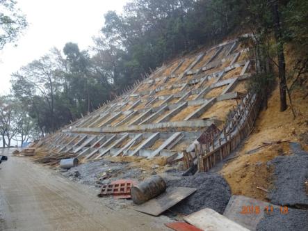我公司承擔的東湖風景區楓都山滑坡治理項目目前實施順利,已完成邊坡支護格構梁的施工。