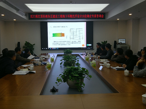 漢口濱江國際商務區建設工程地下環路工程緊鄰長江大堤,抗浮設計水位對工程安全和造價影響很大,為準確提供抗浮設計水位,公司于2016年12月開始,在工程附近場地設置了3孔長期水位觀測孔同步觀測長江水位與觀測孔水位變化規律,目前已總結出初步規律。2018年3月23日上午,公司在1717會議室組織召開了“漢口濱江國際商務區建設工程地下環路抗浮設計水位確定專家咨詢會”,會議由公司副總經理兼總工程師官善友主持。
