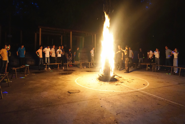 簡單的軍訓結束后,拓展活動隨即拉開帷幕,教練向大家詳細講解了本次拓展活動的要求和具體規則,以輕松有趣的熱身方式對隊員進行了分組,分別制定了隊名及口號,并進行了團隊建設、團隊融合和團隊展示。在5名教練的指導下,隊員們攻堅克難,不斷挑戰自我、突破自我,先后完成了“風雨戰士”、“信任背摔”、“穿越電網”等團隊游戲。活動中,各隊隊員全心投入,充分調動自己的靈感和創造性,積極獻言獻策,協作完成了項目設置的層層挑戰,掌聲、笑聲和歡呼聲此起彼伏。當晚,一場精彩的篝火晚會在月夜下拉開帷幕,隊員們手拉手圍著篝火,隨音樂起舞。來自各部門的“文藝骨干”即興表演,引得掌聲不斷,歡呼不歇。