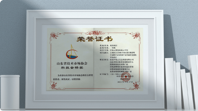 2021年,中農云農業社會化服務體系獲得“山東省技術市場協會科技金橋獎”-優秀項目獎一等獎。